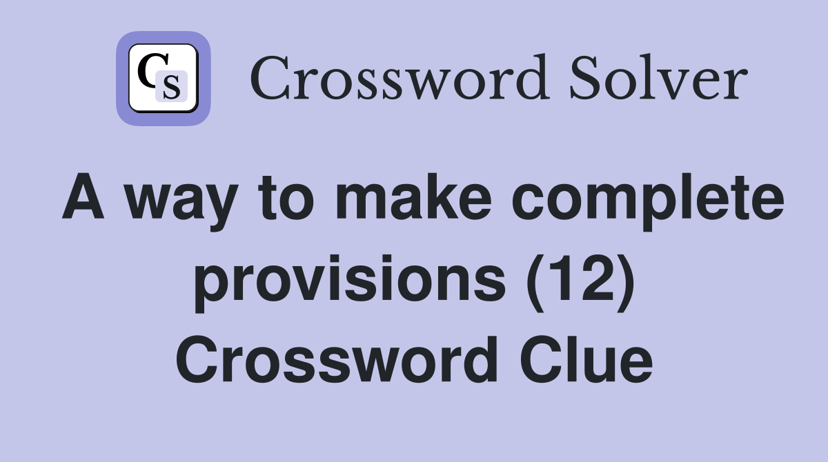 A way to make complete provisions (12) Crossword Clue Answers
