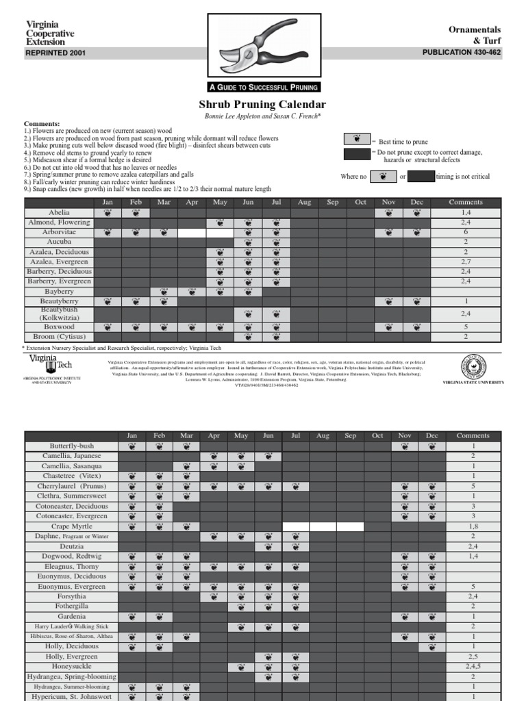 Shrub Pruning Calendar Download Free PDF Pruning Plants