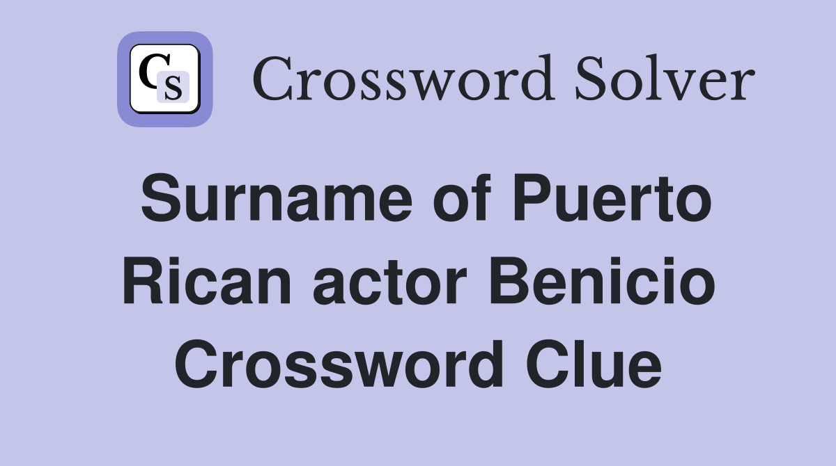 Surname of Puerto Rican actor Benicio Crossword Clue Answers