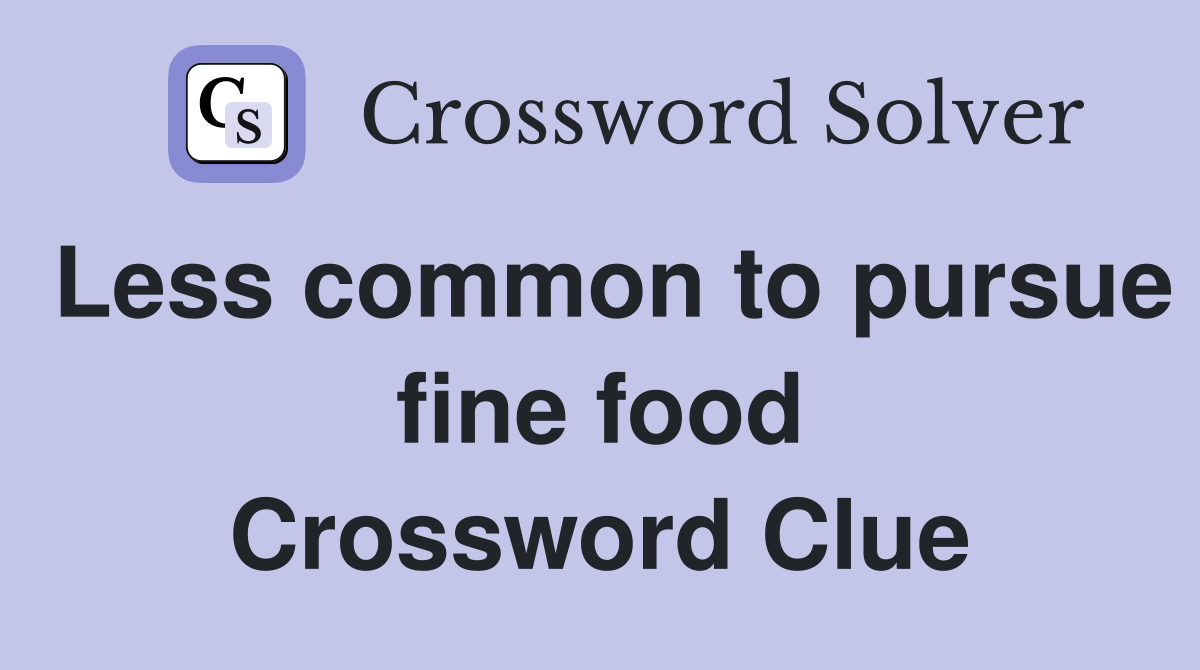 Less common to pursue fine food Crossword Clue Answers Crossword Solver