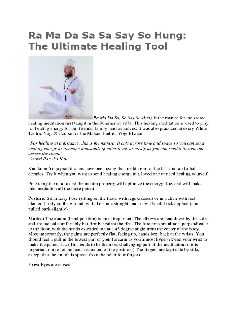 Ra Ma Da Sa Sa Say So Hung Meditation PDF Mantra Meditation