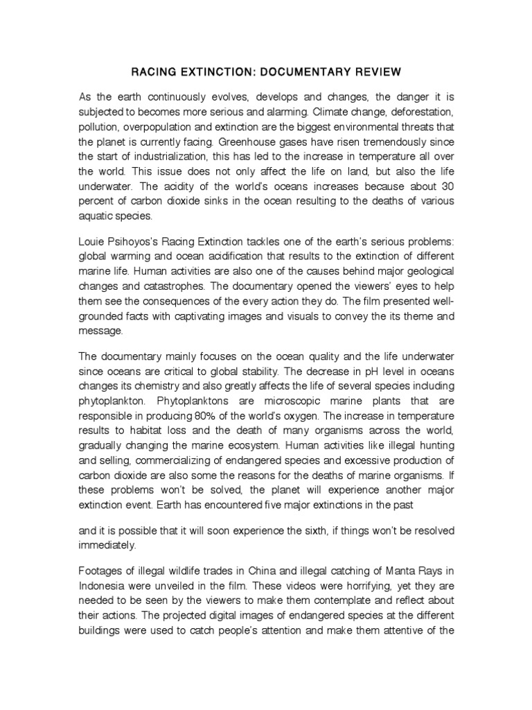 This documentary gives a solid overview to the problem of. Racing extinction is a documentary directed by louie psihoyos that explores the global crisis. How many major extinctions have we had on earth? Where does man appear on the 24 hour. Study with quizlet and memorize flashcards containing terms like what is the tipping point?,.