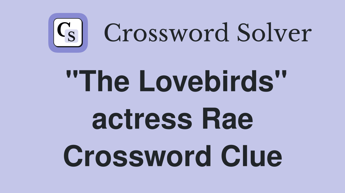 Now, let's get into the answer for the lovebirds actress rae crossword clue. We found 40 solutions for rae of “the lovebirds”. The crossword solver found 30 answers to rae of the 'lovebirds', 4 letters crossword clue. While searching our database we found 1 possible solution for the: The lovebirds actress rae la times crossword.