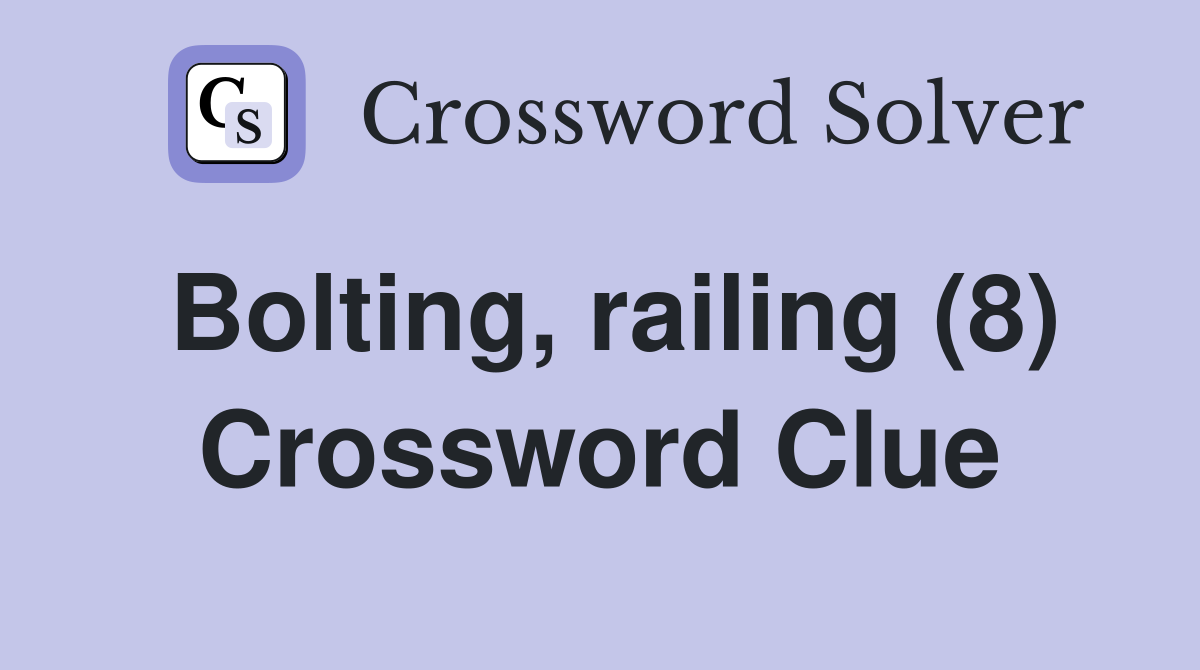 Bolting, railing (8) Crossword Clue Answers Crossword Solver