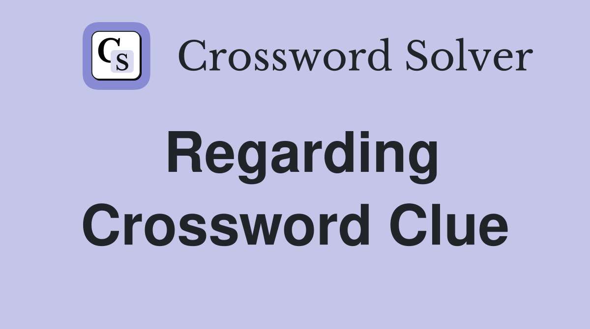 The crossword solver found 60 answers to regarding, 6 letters crossword clue. Are you stumped by the regarding crossword clue? Regarding is a crossword puzzle clue that we have spotted over 20 times. This page shows answers to the clue regarding, followed by 3 definitions like “to have regards. Find the right answer to the crossword clue regarding from the.