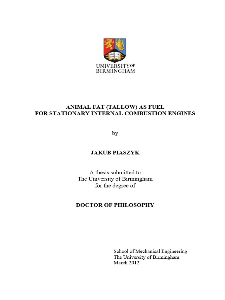 Animal Fat as fuel PDF Engines Combustion