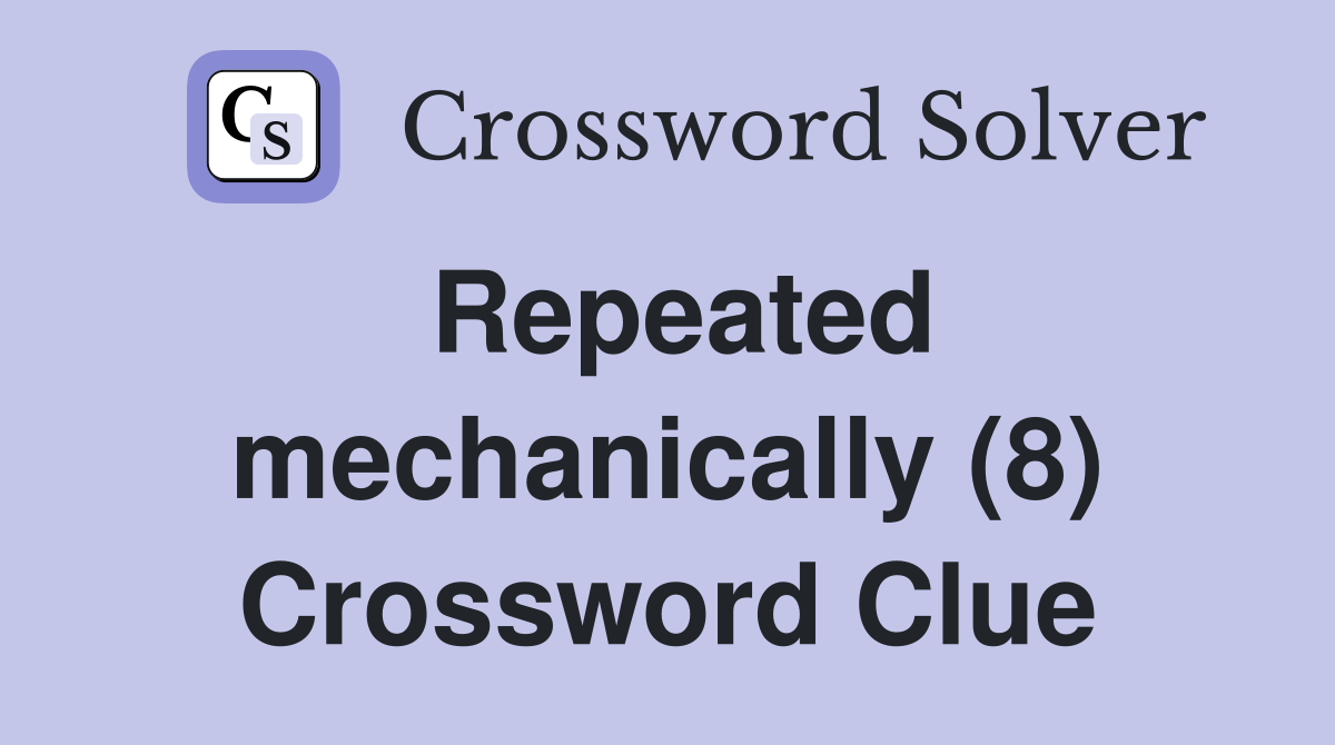 Repeated mechanically (8) Crossword Clue Answers Crossword Solver
