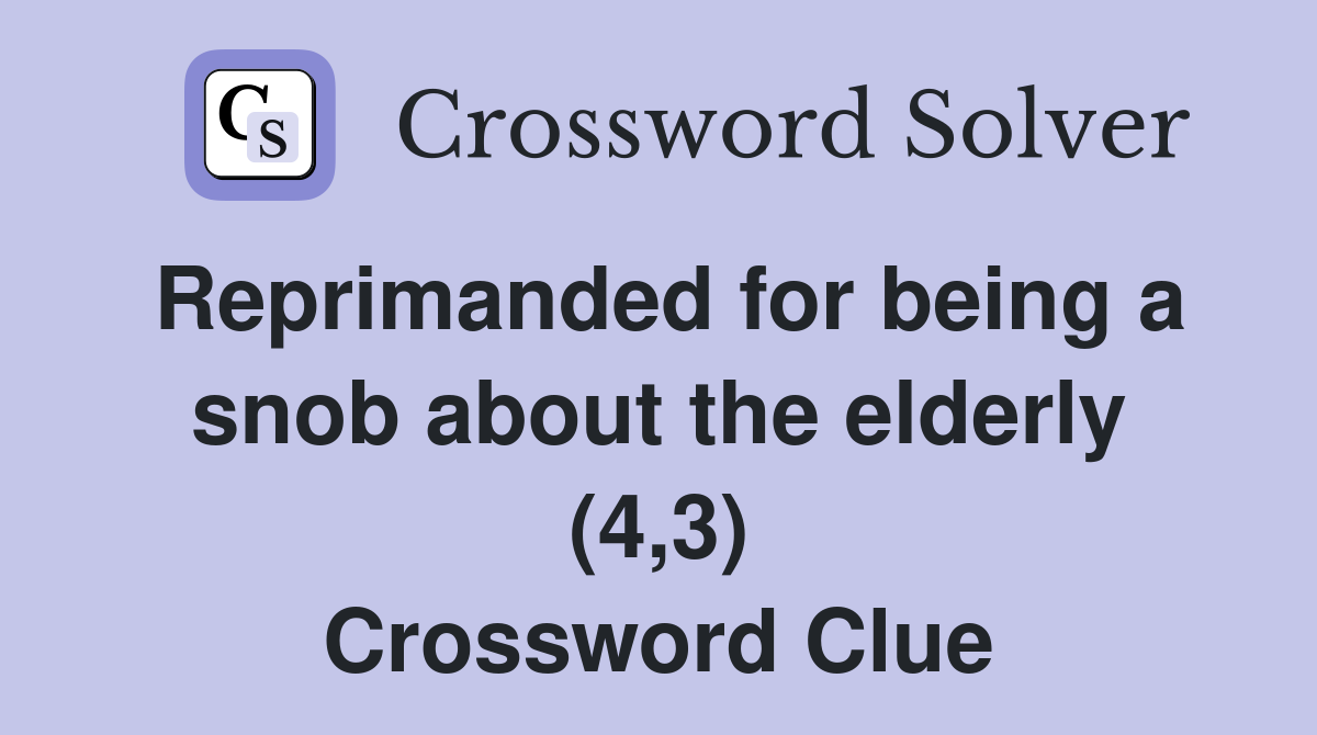 Reprimanded for being a snob about the elderly (4,3) Crossword Clue