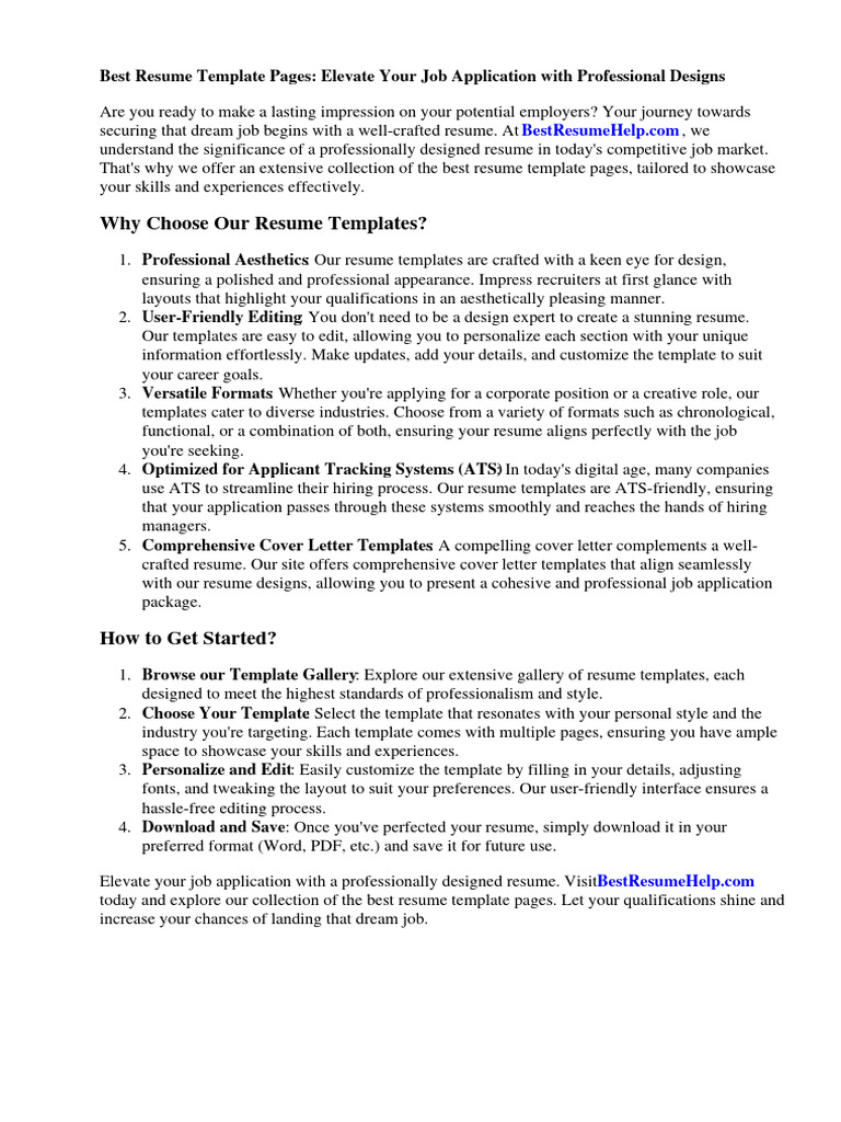 Resume Template Pages Download