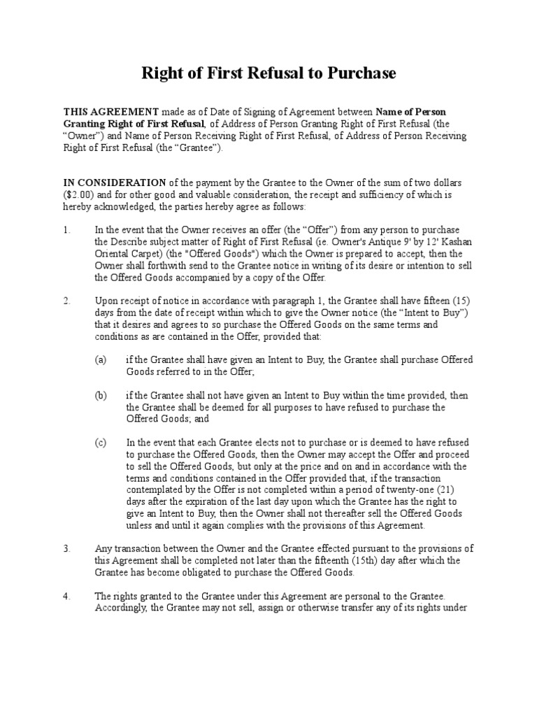 Right Of First Refusal Template