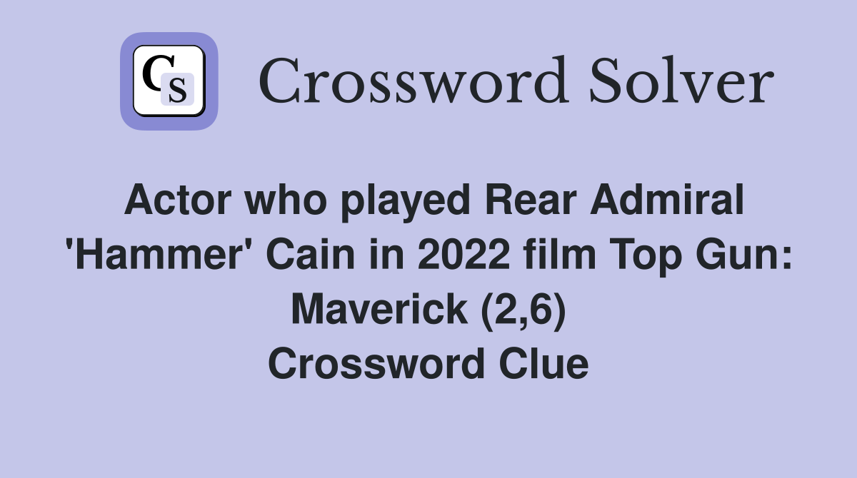 The crossword solver found 30 answers to rooster's father in top gun, 5 letters. It was last seen in. Crossword answers for 'roosters father in top gun' (1 exact answer, 104 possible. See answer for rooster's father in top gun nyt crossword clue which will help. Here are the possible solutions for rooster's father in top gun clue.