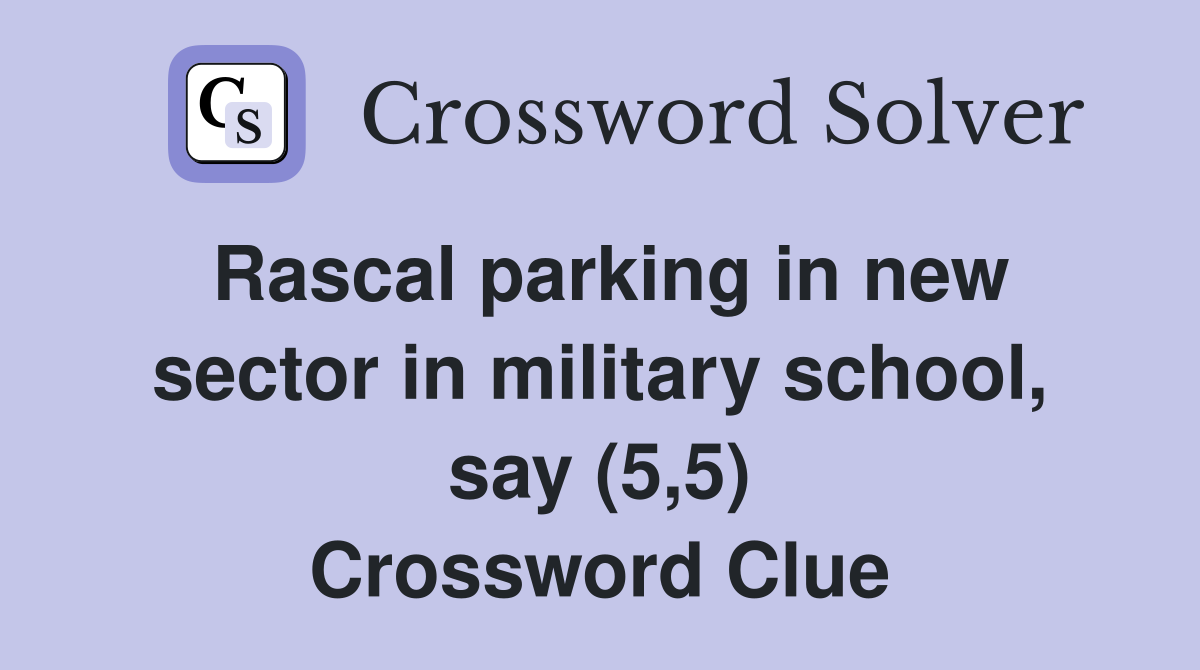 Rascal parking in new sector in military school, say (5,5) Crossword