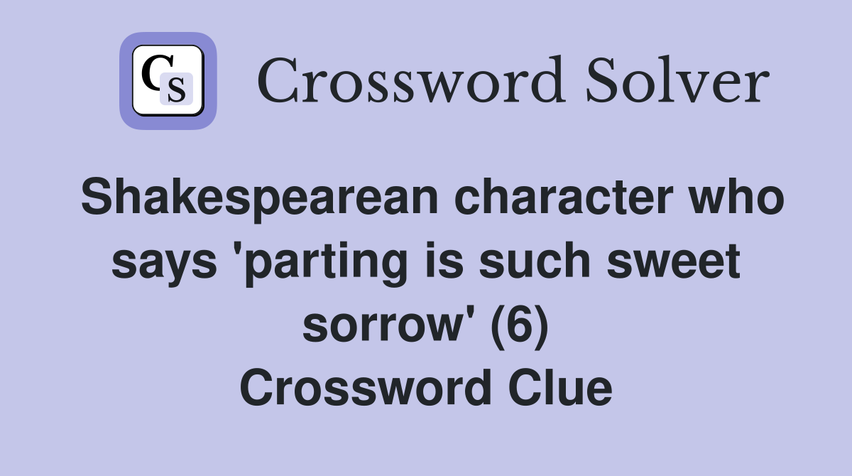 Shakespearean character who says 'parting is such sweet sorrow' (6