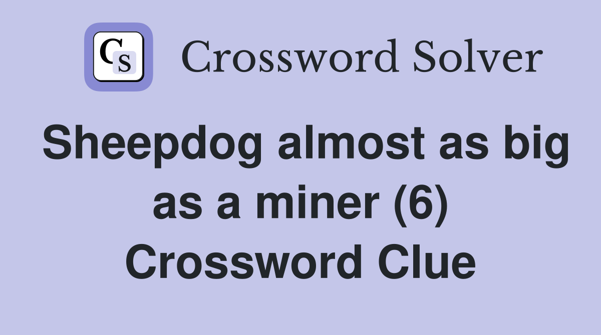Sheepdog almost as big as a miner (6) Crossword Clue Answers