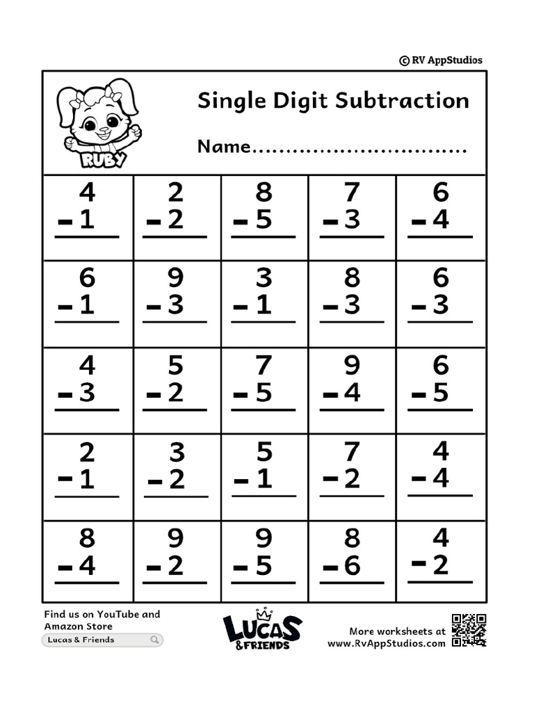 K5 learning also offers more. This single digit subtraction worksheet is configured for 2 numbers in a vertical problem. These worksheets explain how to solve single digit subtraction problems.