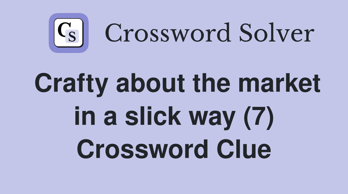 Crafty about the market in a slick way (7) Crossword Clue Answers