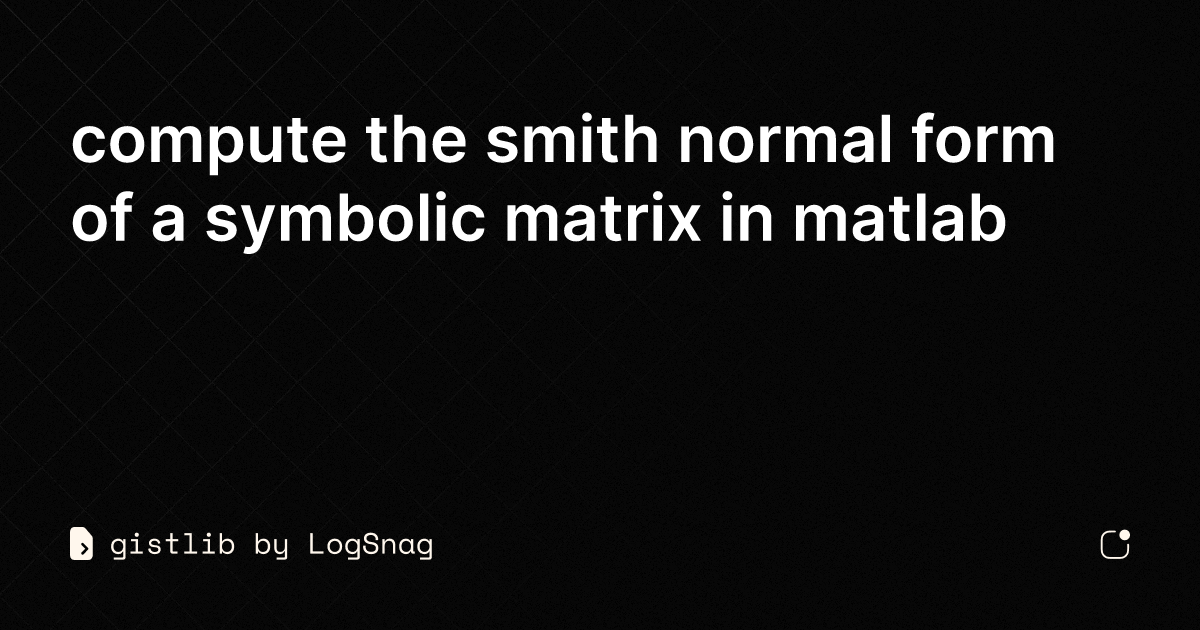 gistlib compute the smith normal form of a symbolic matrix in matlab