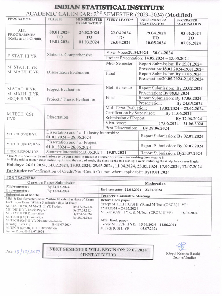 Academic Calendar 202324, Second Semester (Modified) PDF