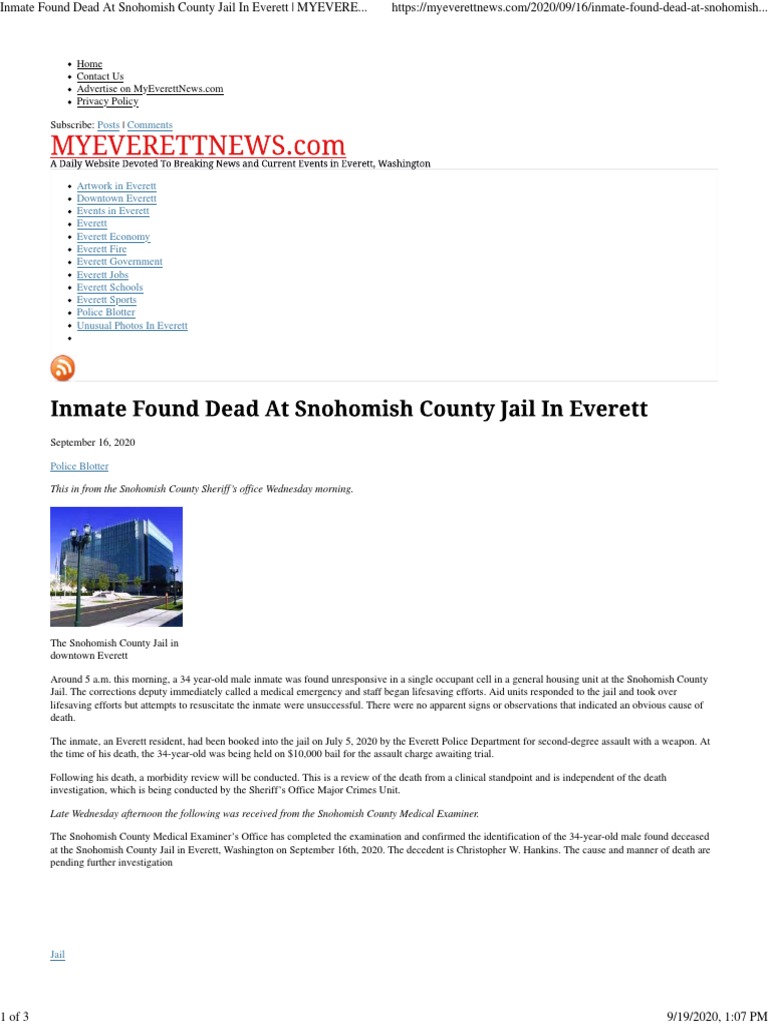 Inmate Found Dead at Snohomish County Jail in Everett MYEVERETTNEWS