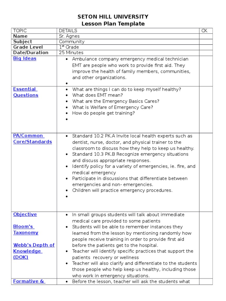 Lesson Plan Template Four Social Studies PDF Emergency Medical