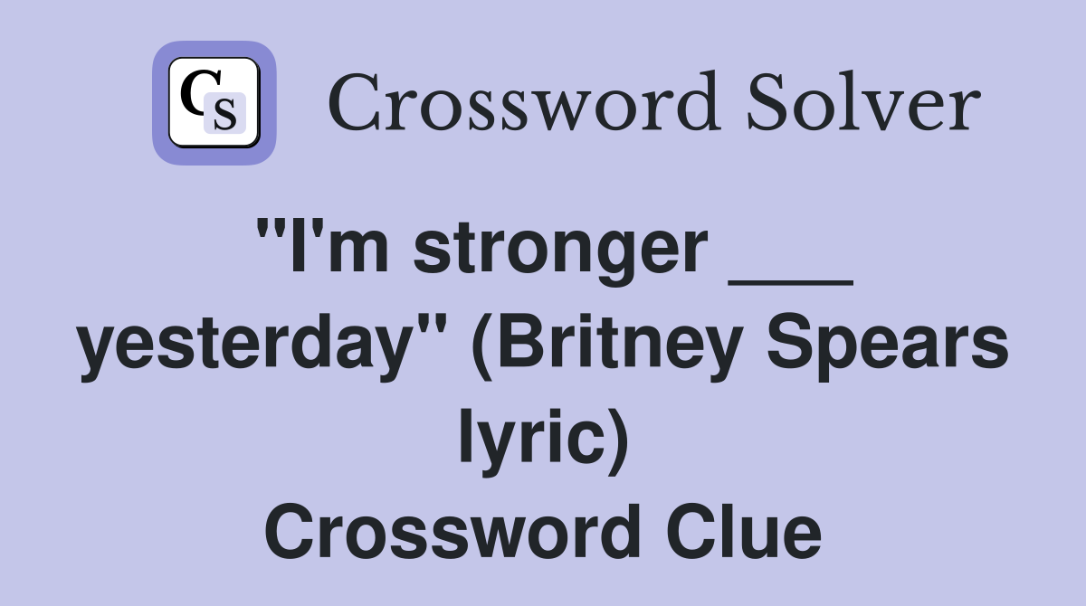 "I'm stronger ___ yesterday" (Britney Spears lyric) Crossword Clue