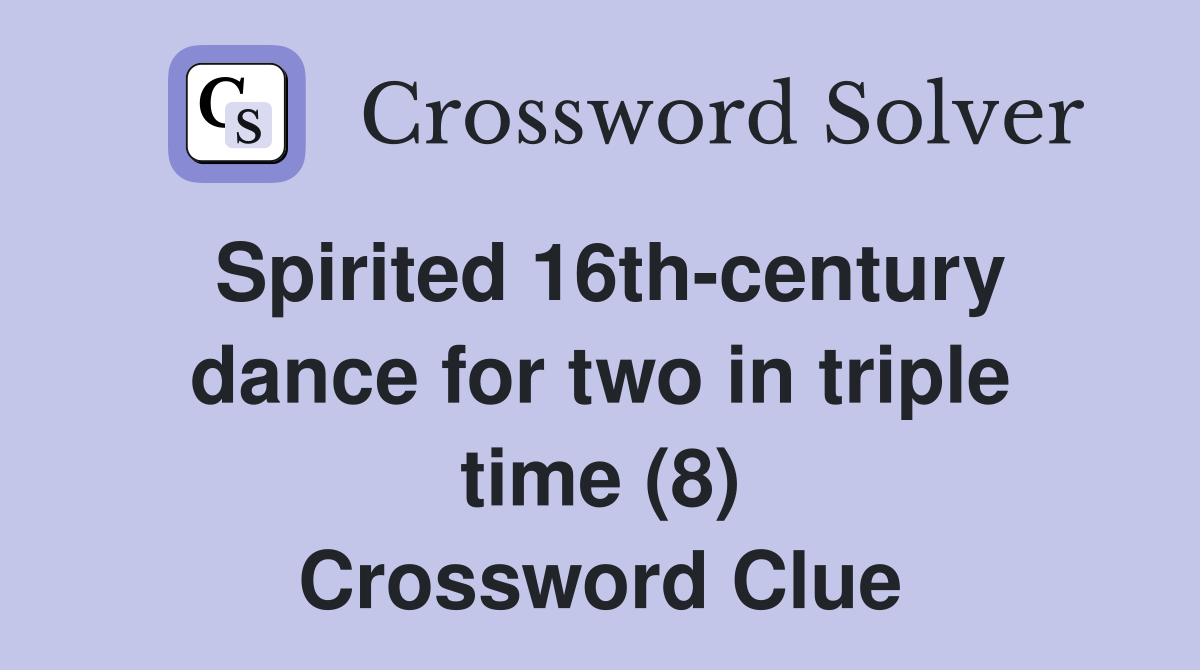 Spirited 16thcentury dance for two in triple time (8) Crossword Clue