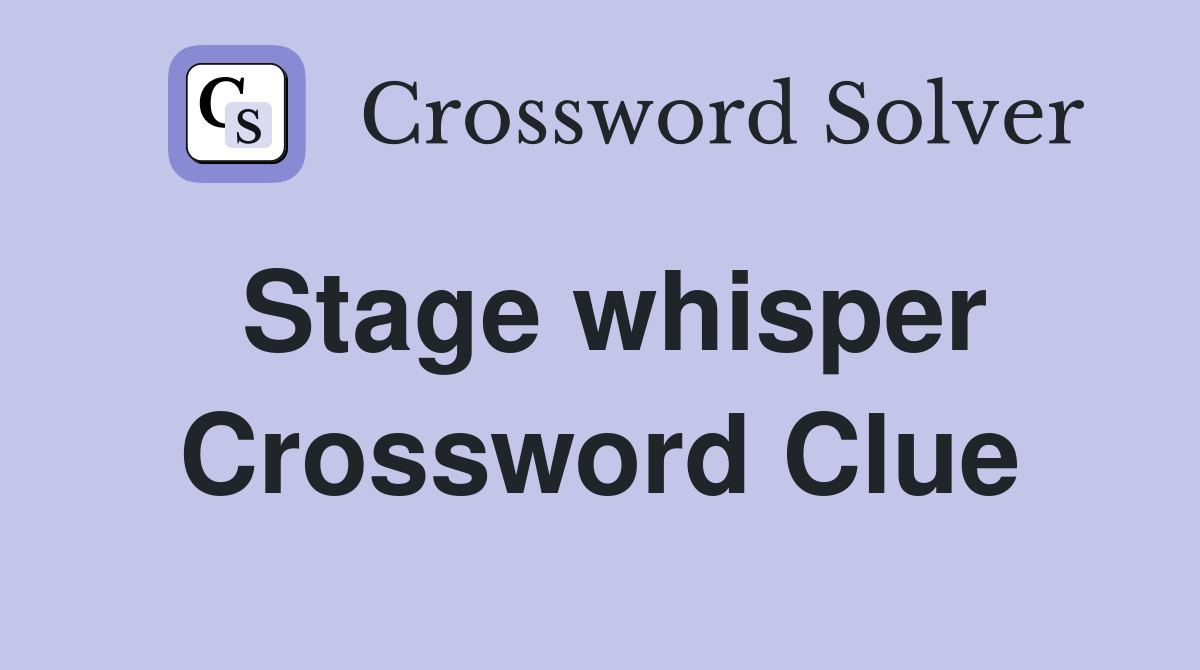 Here is the solution for the stage whisper. Answers for stage whisper (5) crossword clue, 5 letters. Find 25 solutions for the crossword puzzle stage whisper, from 1 to 15 letters. We have found 40 possible answers for this clue in our database. See more clues and answers on dan word website. Find the solution for stage whisper in british quick crossword. Learn the definition of stage whisper and see examples of synonyms. This crossword clue was last seen on 5. Clue featured on january 1, 1969. Here is the answer for the crossword clue stage whisper last seen in telegraph cross atlantic puzzle.