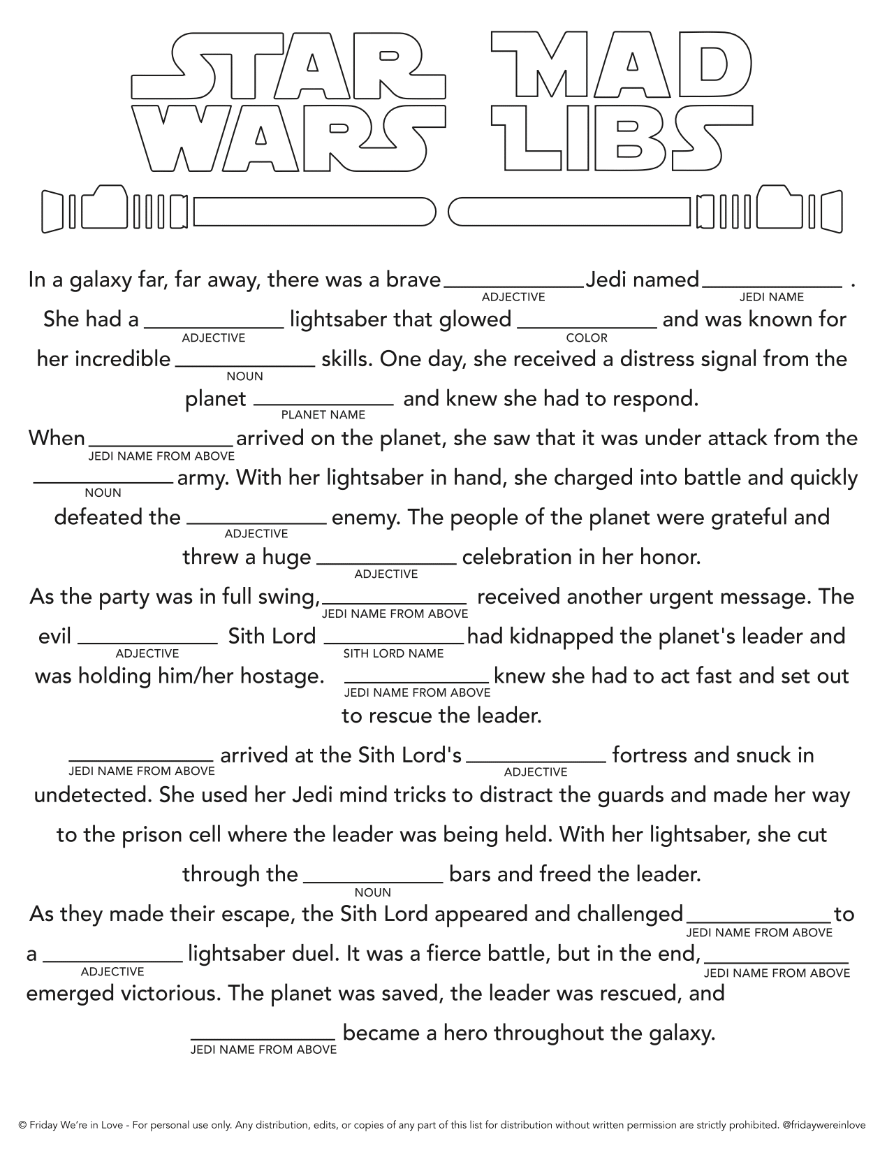 Star Wars Mad Libs Printable Friday We're In Love