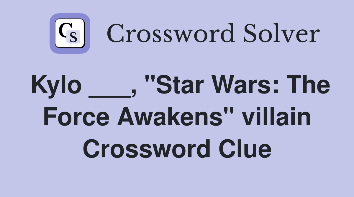 May 1, 2024 answer of kylo star wars the force awakens villain clue in nyt crossword puzzle. There is one answer total, kyloren is the most recent and it has 7 letters. June 12, 2024 answer of ren of star wars the last jedi clue in nyt crossword puzzle. There is one answer total, ren is the most recent and it has 3 letters.