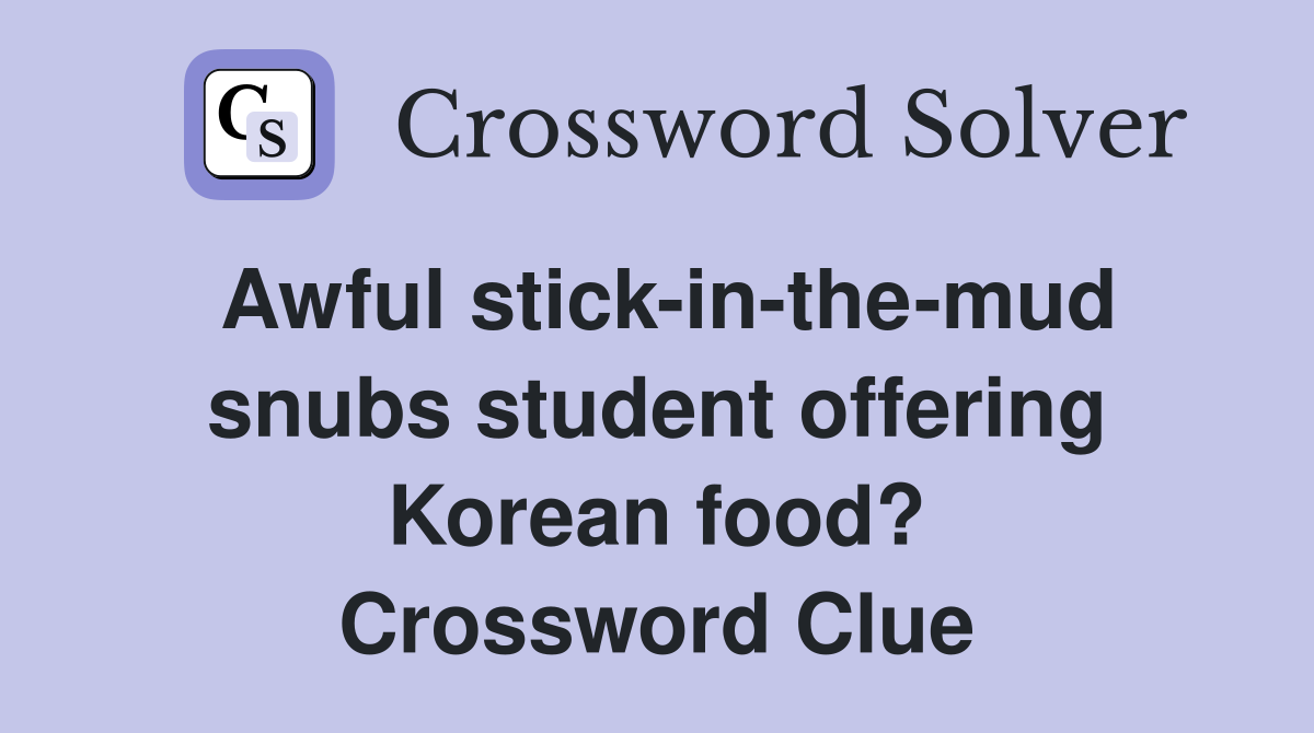 Awful stickinthemud snubs student offering Korean food? Crossword