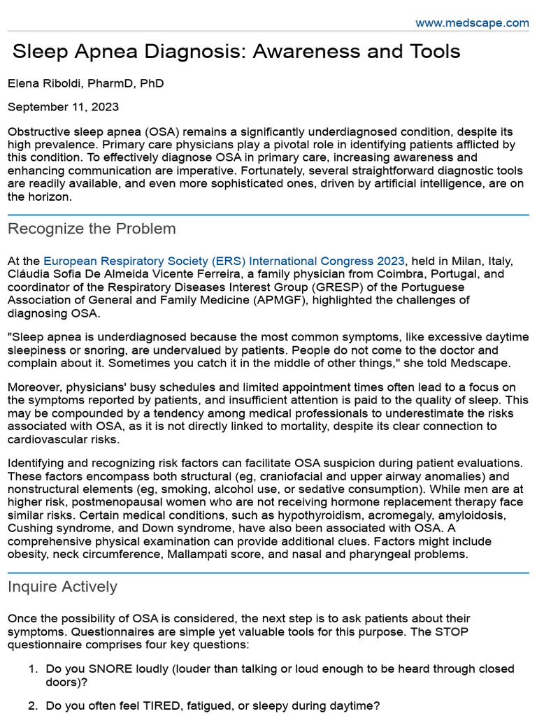 A Tool To Screen Patients For Obstructive Sleep Apnea (Osa) Based On Eight Questions.