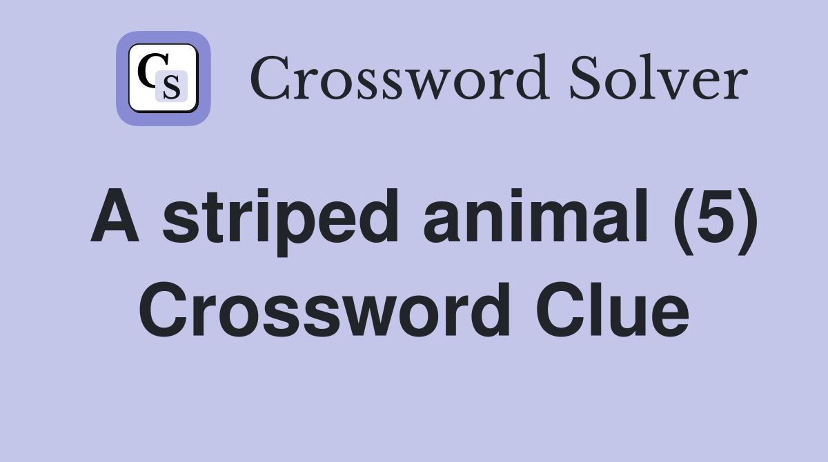 We think the likely answer to this clue is tiger. Striped animal is a crossword puzzle clue that we have spotted over 20 times. We will try to find. Here is the answer for the crossword clue striped animals. The crossword solver found 30 answers to striped animal, 5 letters crossword clue.
