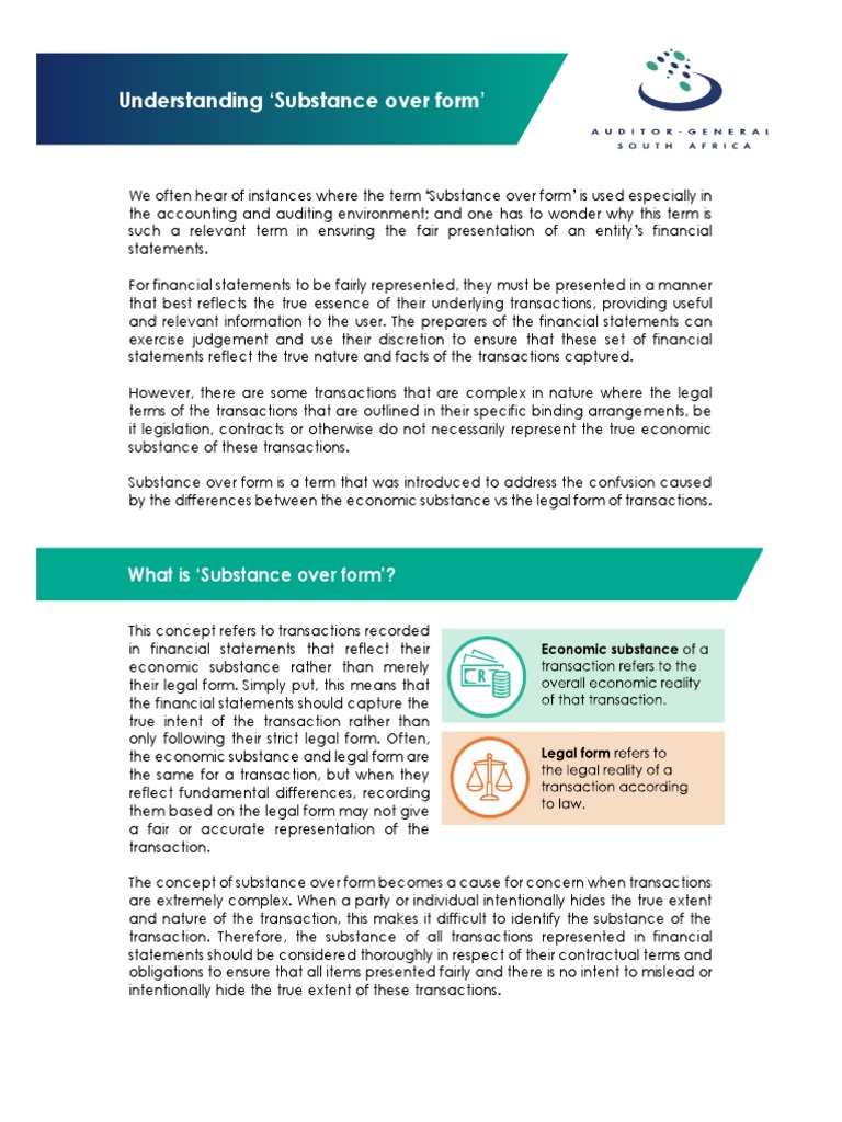 Substance over form is an accounting concept / principle which means that the economic substance of transactions and events must be recorded in the financial statements rather than. Substance over form means that the financials and accompanying disclosures of a business should reflect the underlying realities of accounting transactions. Guide to substance over form and its meaning. Substance over form.