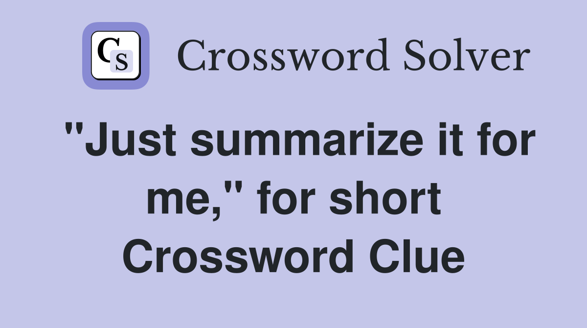 "Just summarize it for me," for short Crossword Clue Answers