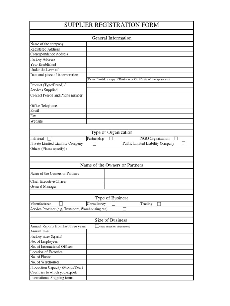 FREE 7+ Sample Supplier Registration Forms in PDF MS Word