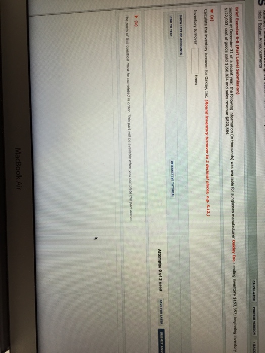 Calculate The Days In Inventory For Oakley, Inc.