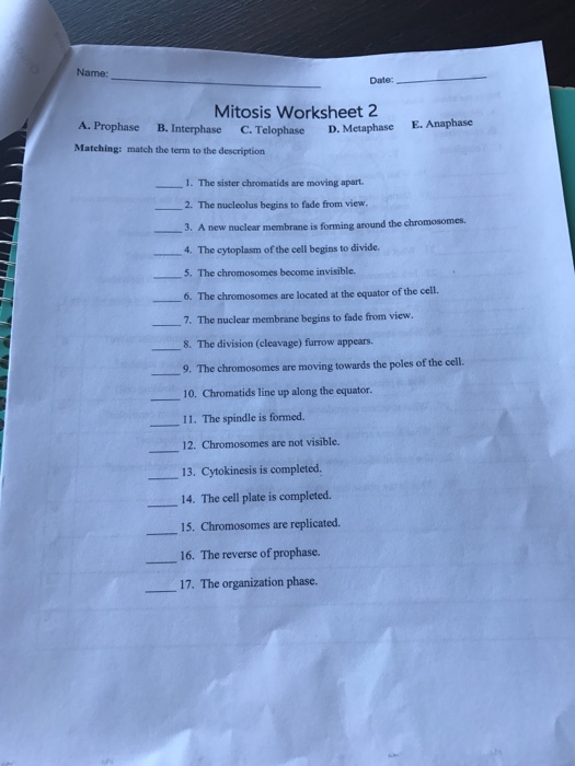 Stages Of Mitosis Worksheet Worksheets Library