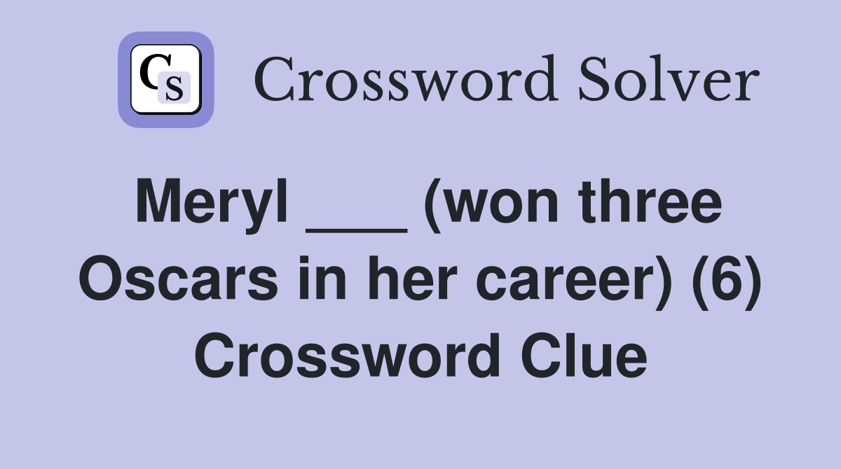 Meryl ___ (won three Oscars in her career) (6) Crossword Clue Answers