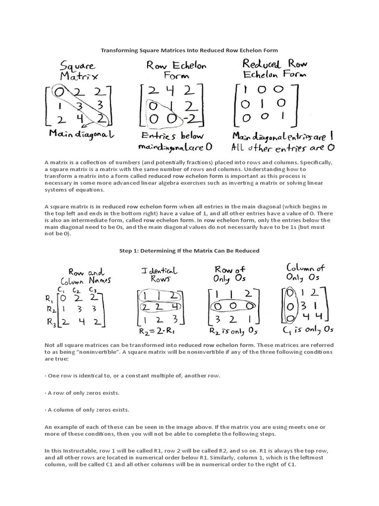 Row and Reduced Echelon Form PDF Matrix (Mathematics) Theoretical