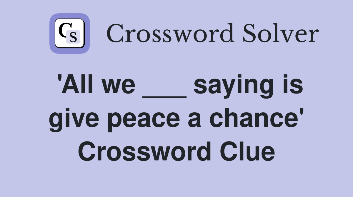 'All we ___ saying is give peace a chance' Crossword Clue Answers