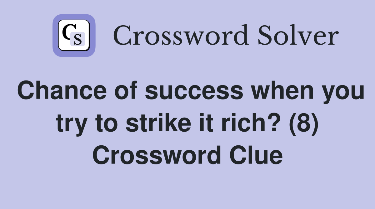 Chance of success when you try to strike it rich? (8) Crossword Clue