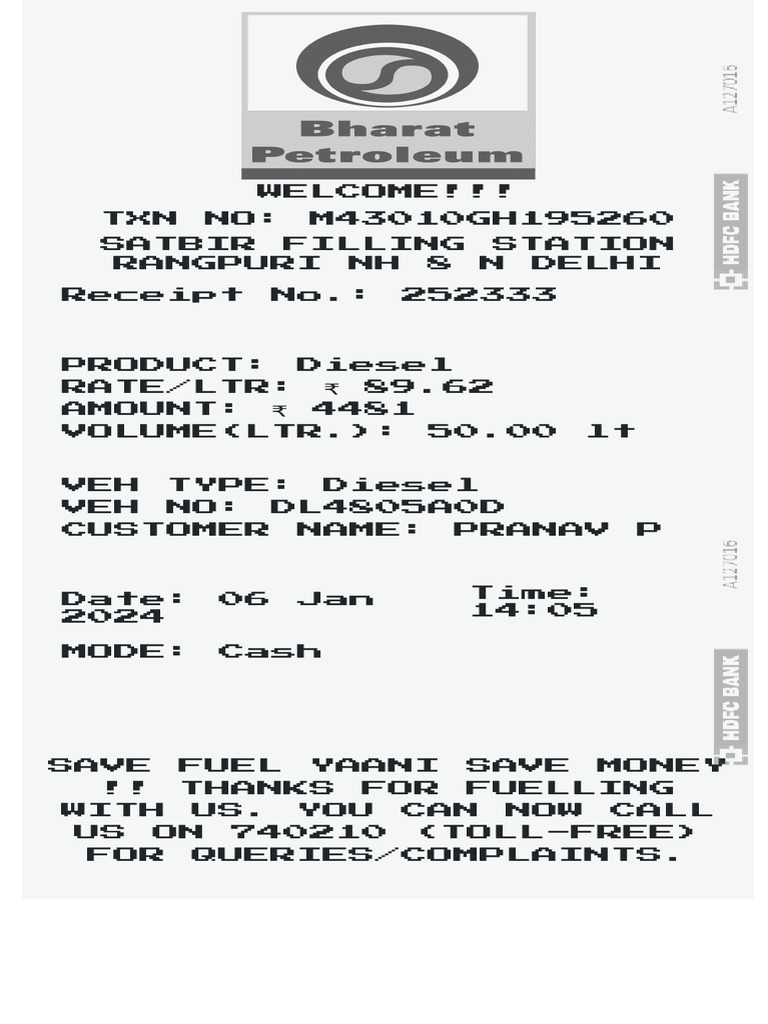 Fuel Bill Template 3 PDF