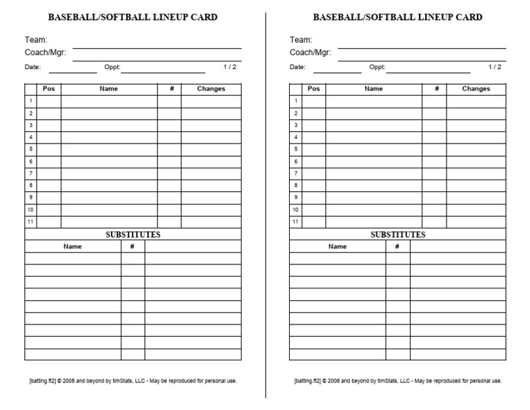 Free Baseball Lineup Card Template