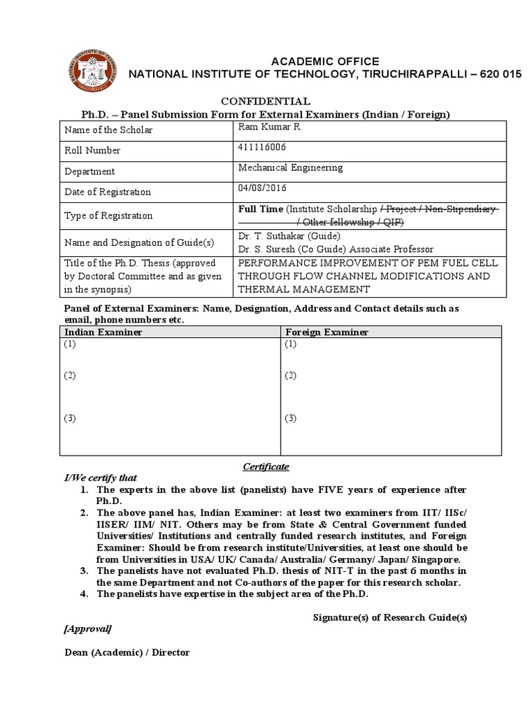 National Institute of Technology Calicut PHD Doctoral Committee Panel