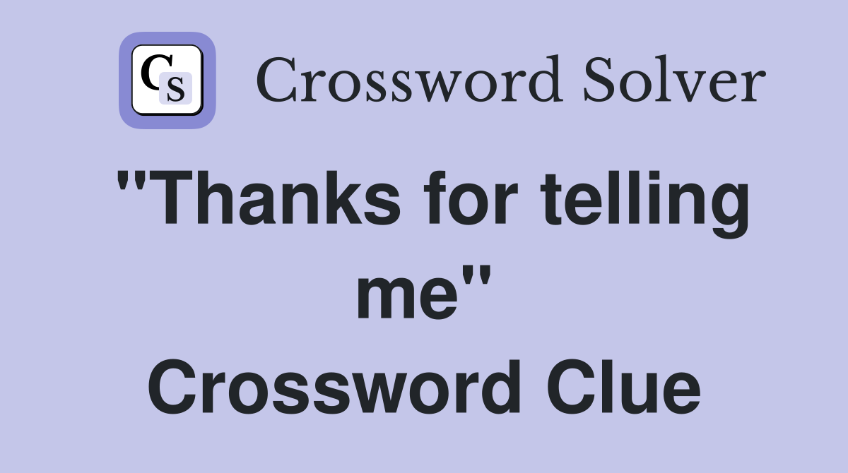 "Thanks for telling me" Crossword Clue Answers Crossword Solver