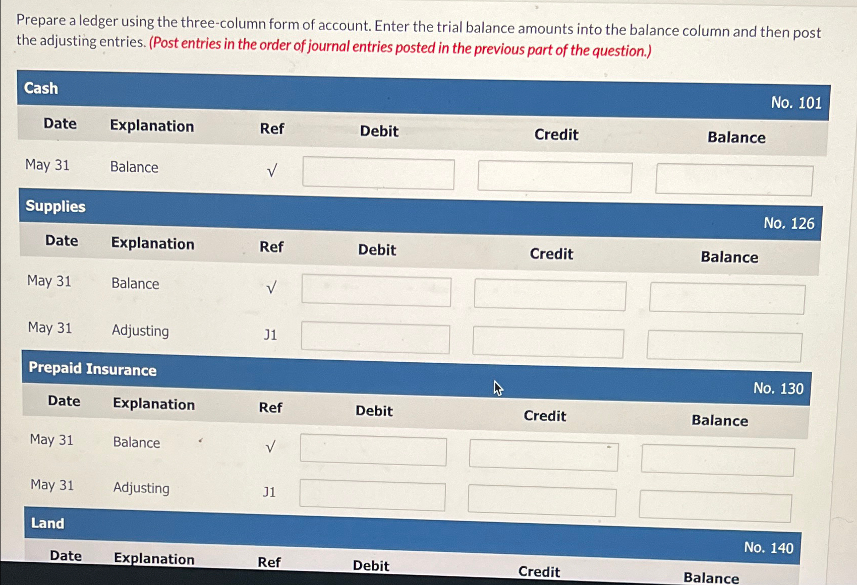 Solved (B Only) Prepare a ledger using the threecolumn form