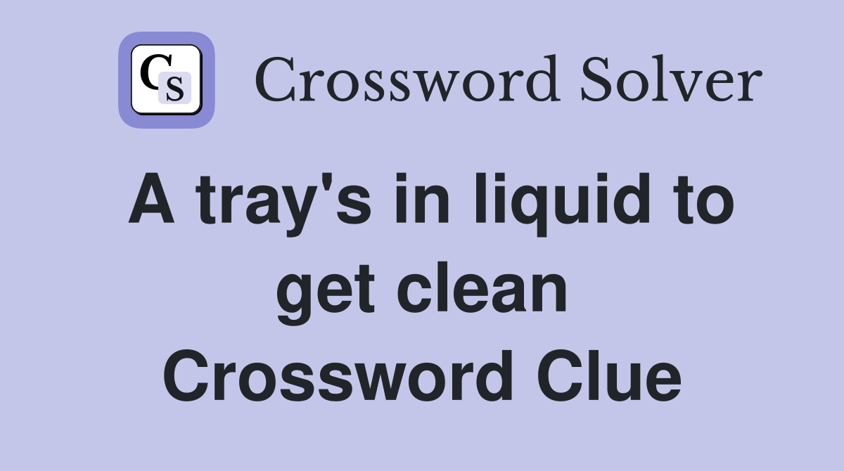 A tray's in liquid to get clean Crossword Clue Answers Crossword Solver
