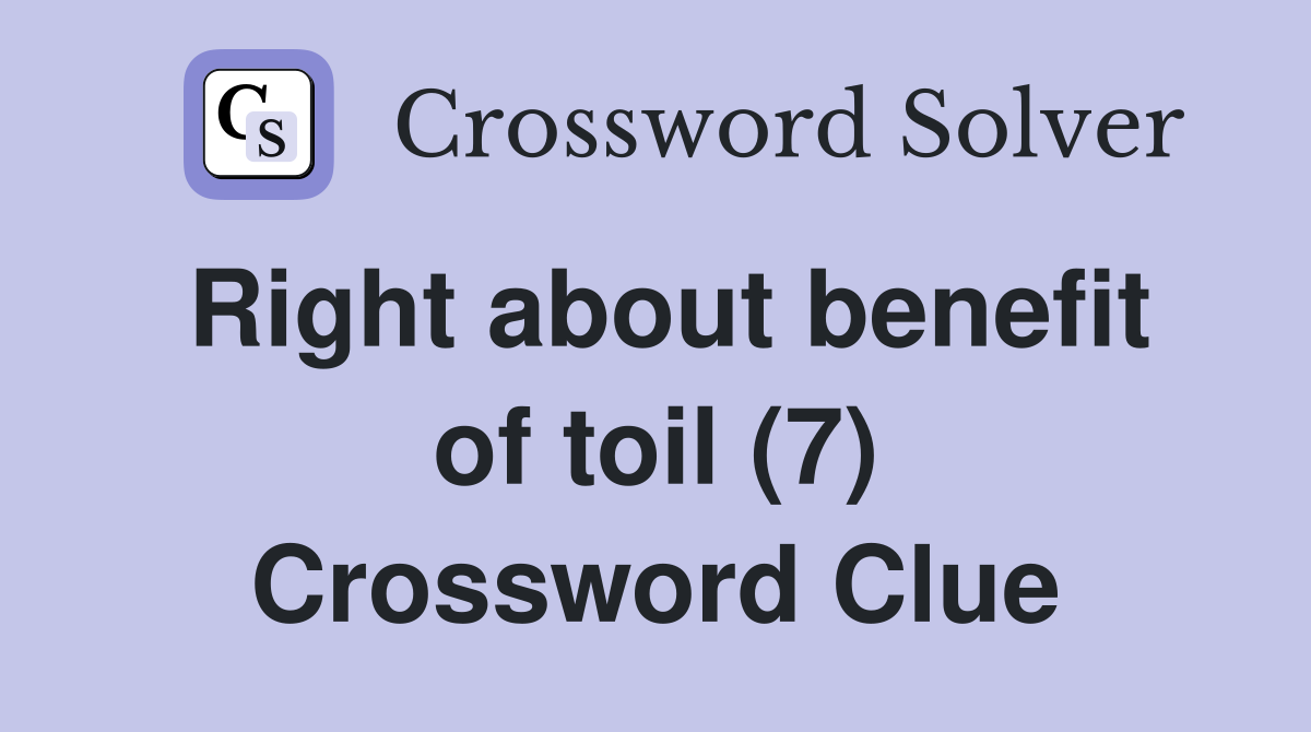 Right about benefit of toil (7) Crossword Clue Answers Crossword Solver