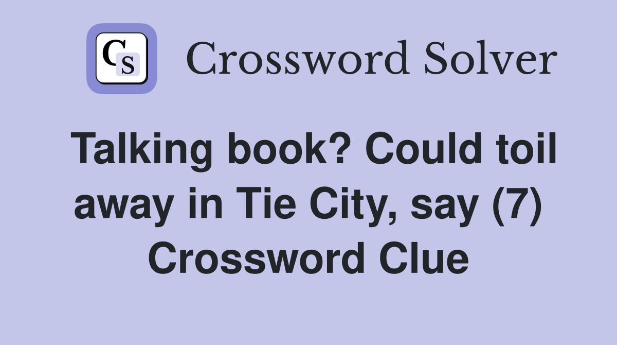 Talking book? Could toil away in Tie City, say (7) Crossword Clue