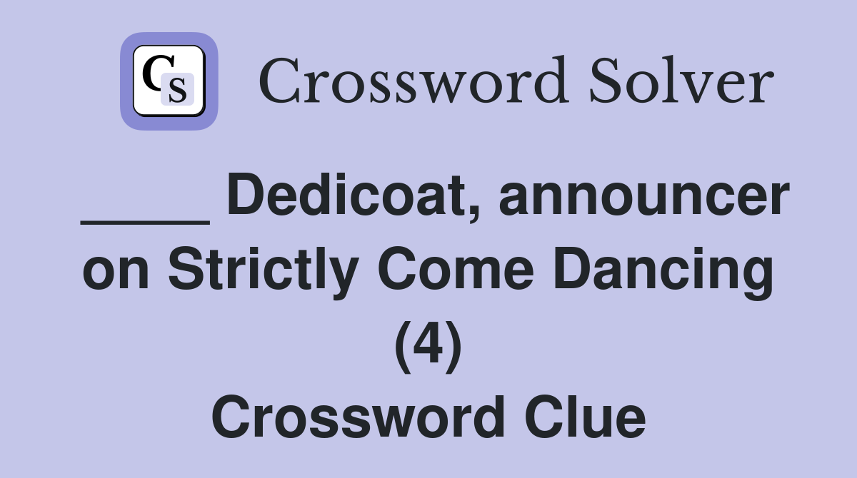 Dedicoat, announcer on Strictly Come Dancing (4) Crossword Clue